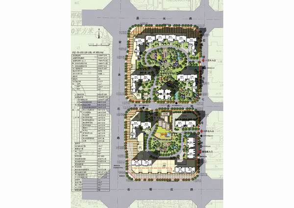 1、小區(qū)內(nèi)設(shè)置兩個(gè)主入口在石榴莊七號(hào)路,主干道以圍繞南北兩側(cè)中心綠地景觀的環(huán)形為基本骨架,保證車輛通行舒適度。